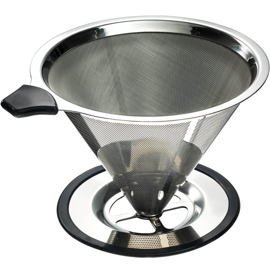 Small Size 300 Mesh 304 Stainless Steel Coffee Dripper With Bottom Plate & Silicone Circle
