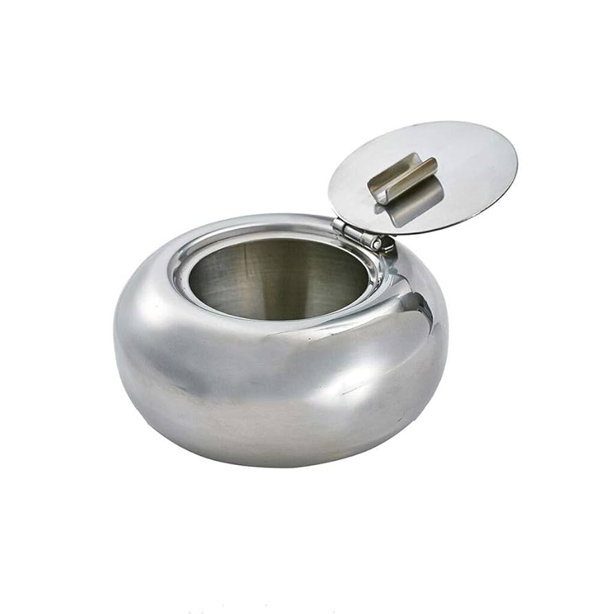 10cm Silver Round Stainless Steel Ashtray With Flip Lid